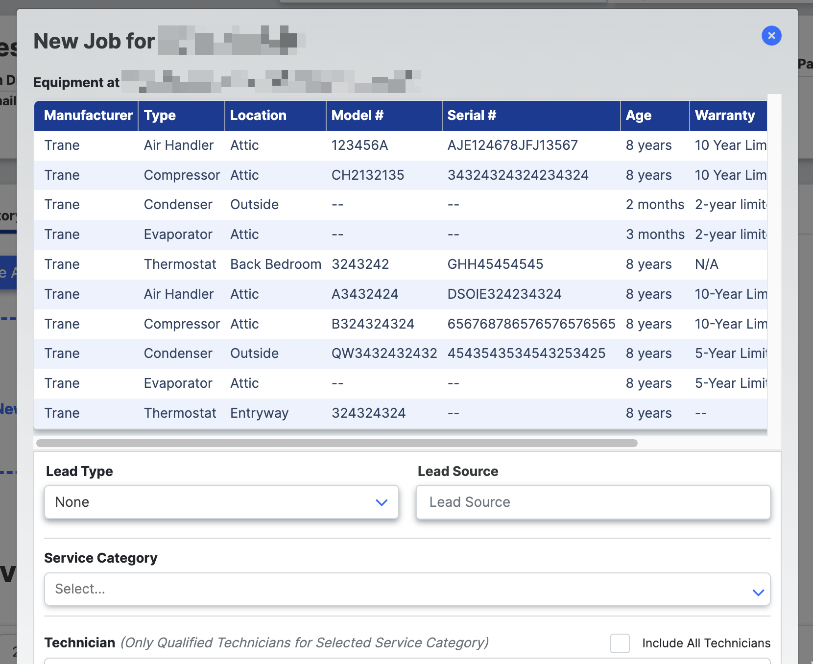 Users can now view a simplified version of a customer's equipment information on the schedule appointment modal.