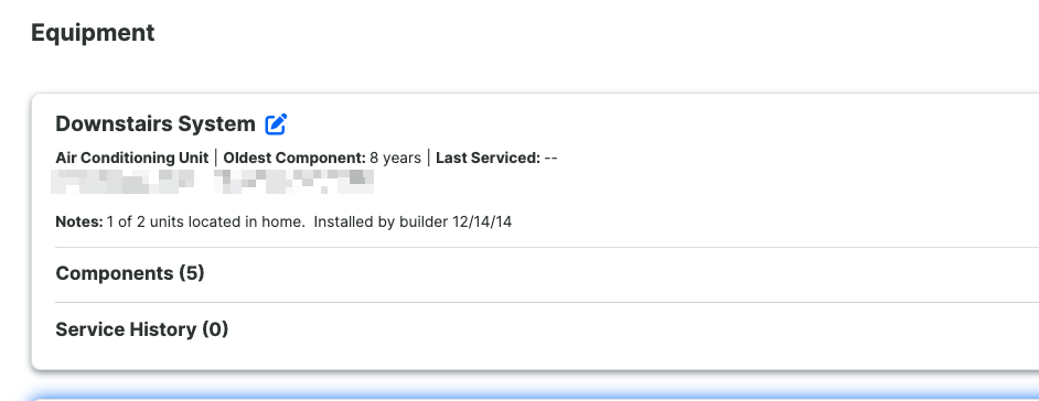 - The equipment card within the customer’s account has been expanded to allow for the display of the last service date of that piece of equipment, the equipment type and the age of the oldest component. This is one of the final pieces necessary before the entirety of the expanded equipment capture model is released.
