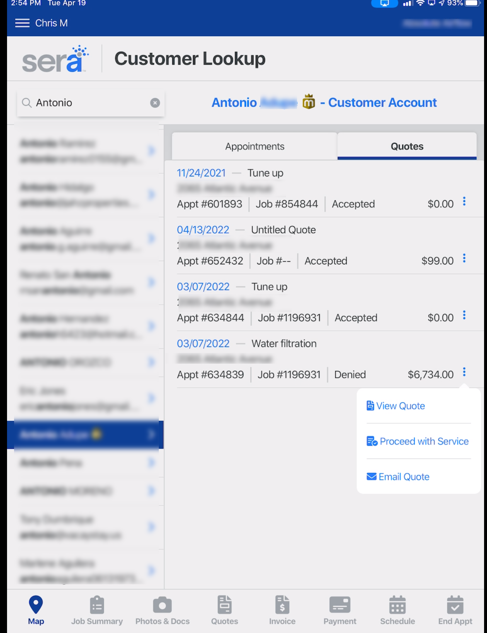 - Customer search will now display appointments and marketable quotes for the customer account.